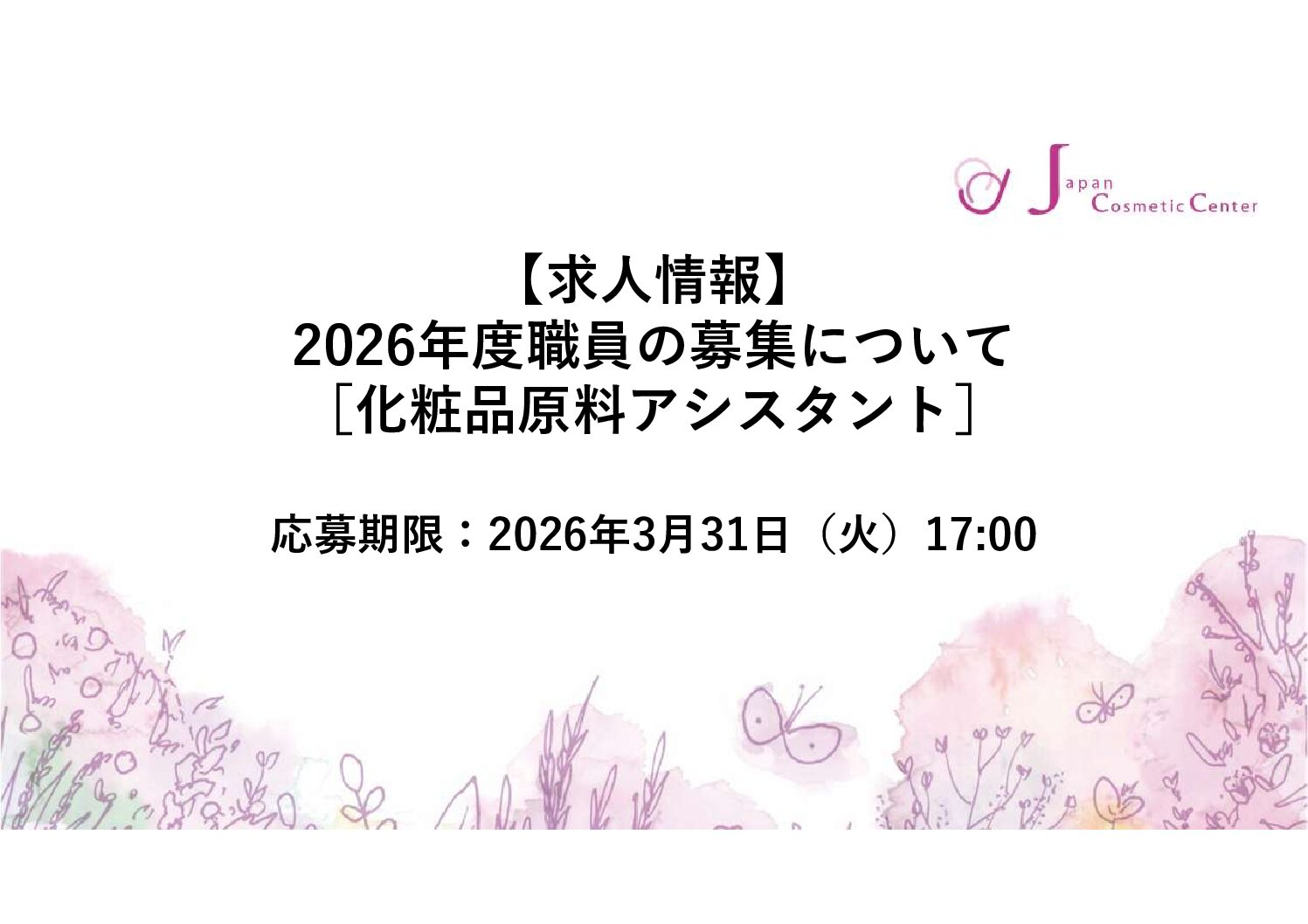 • 【求人募集】2026年度職員の募集について[化粧品原料アシスタント]